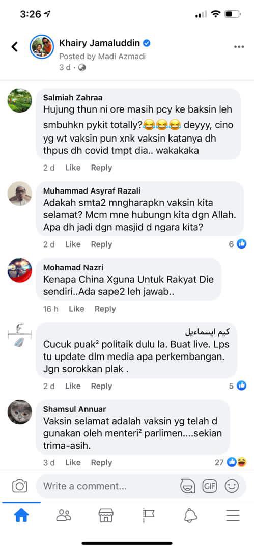 Khairy Jamaluddin On Twitter Some Samples Of Comments On Covid Vaccines From My Fb This Highlights The Huge Communications Challenge We Will Face During The National Immunisation Rollout Https T Co Zhkxkewkkp